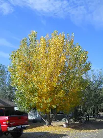 They are beautiful though they presage the days of no leaves at all, of much colder weather, of snow.  But for now . . a lot of green and gold . . . and RED?????