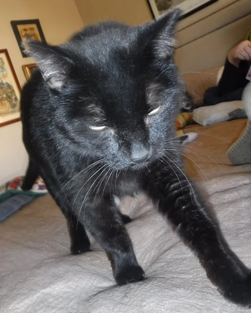 Whereas Blackwell has intuited that he is my cat (or more correctly that I am his human), Muggles clings to my wife, spending many hours on her bed sleeping the day away.